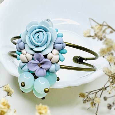 Be the first to review “Baby blue and lilac glass beaded cuff bracelet”