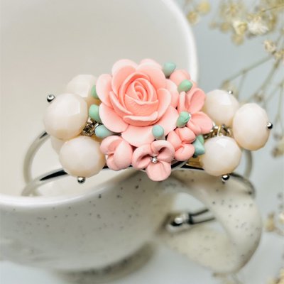 Be the first to review “Baby peach and cream floral silver cuff bracelet”