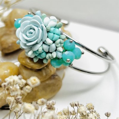 Be the first to review “Blue floral silver cuff bracelet”