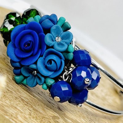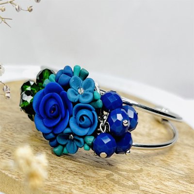 Be the first to review “Dark blue and green floral silver cuff bracelet”