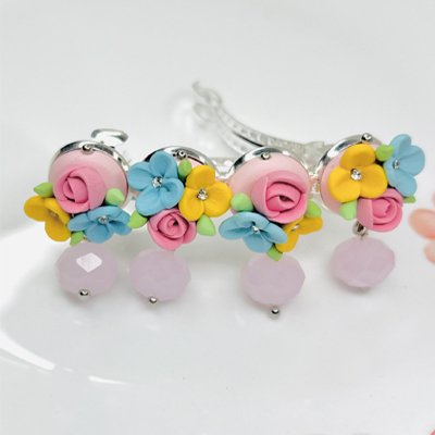 Be the first to review “Light pink crystal floral hair clip”
