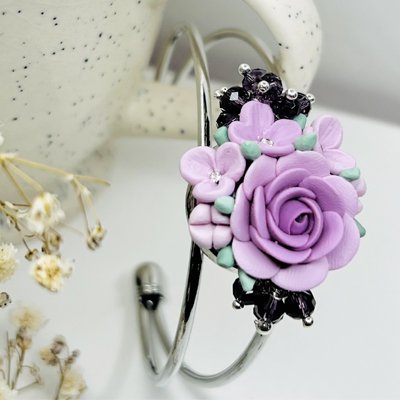 Be the first to review “Light purple floral silver cuff bracelet”