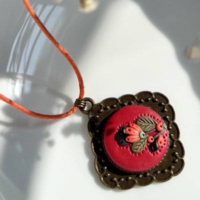 Be the first to review “Maroon and orange floral pendant”