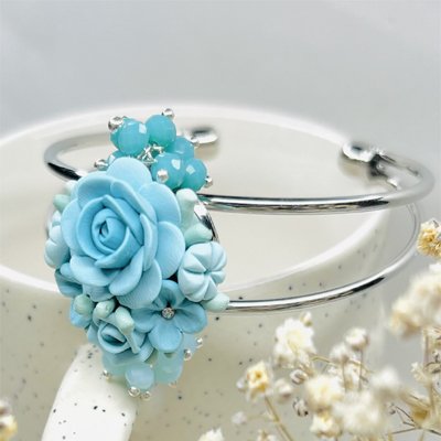 Be the first to review “Sky blue floral silver cuff bracelet”