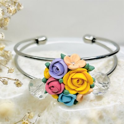 Be the first to review “White crystal multicolored floral silver cuff bracelet”